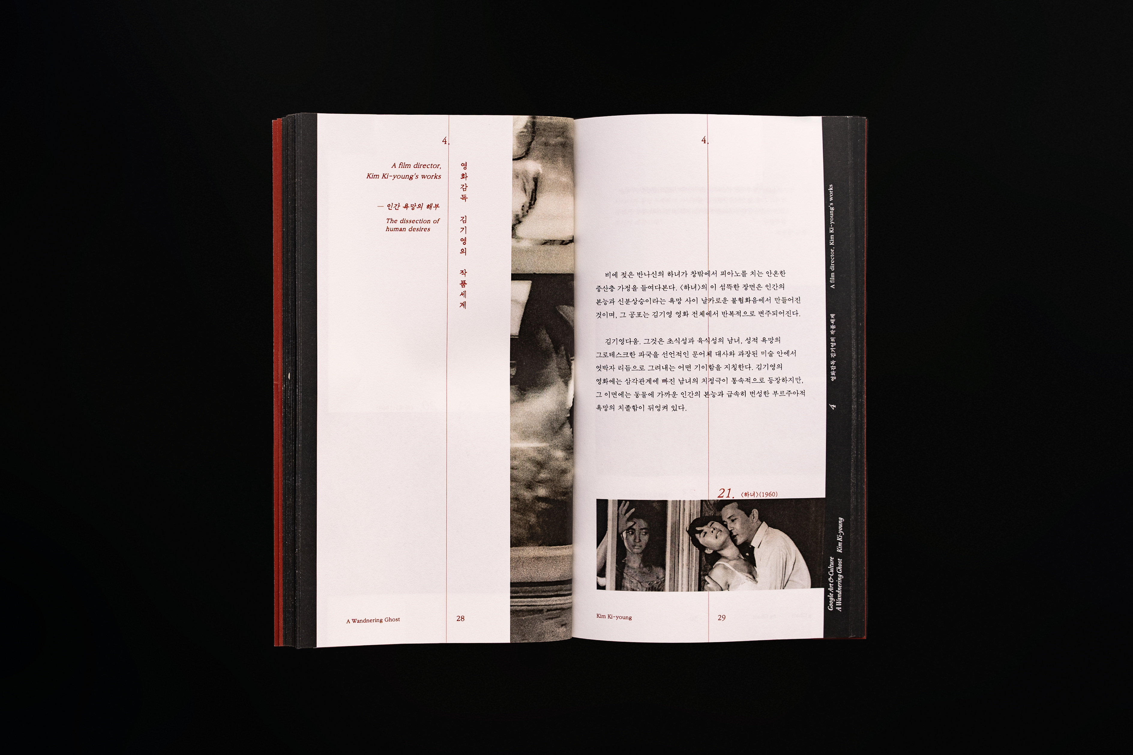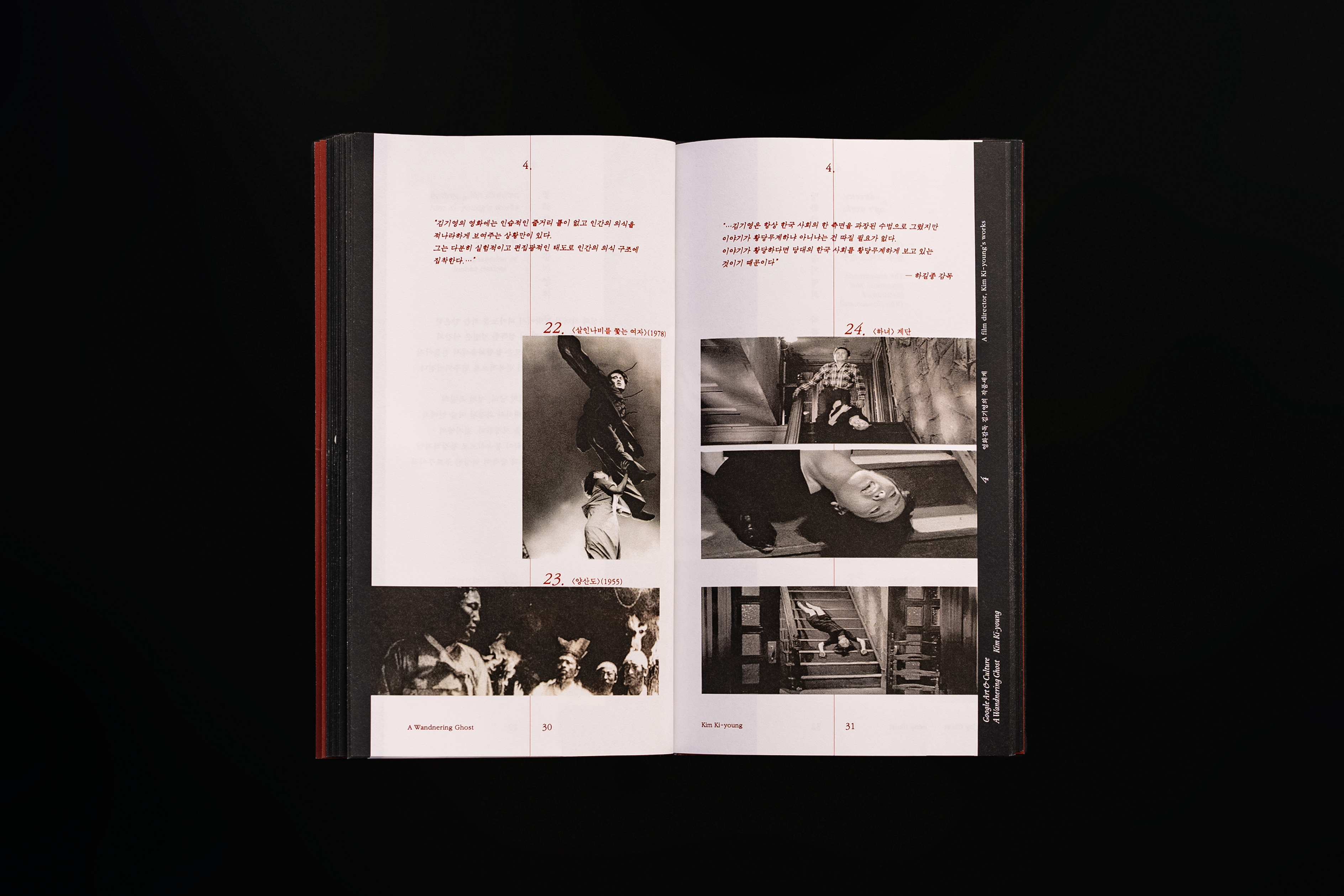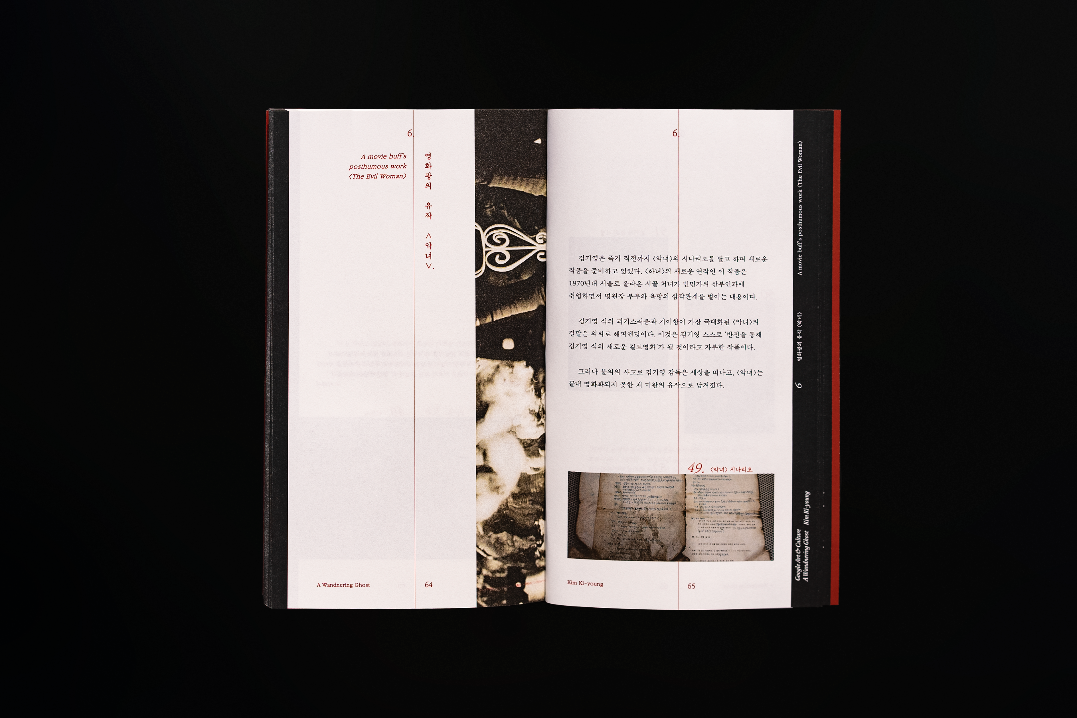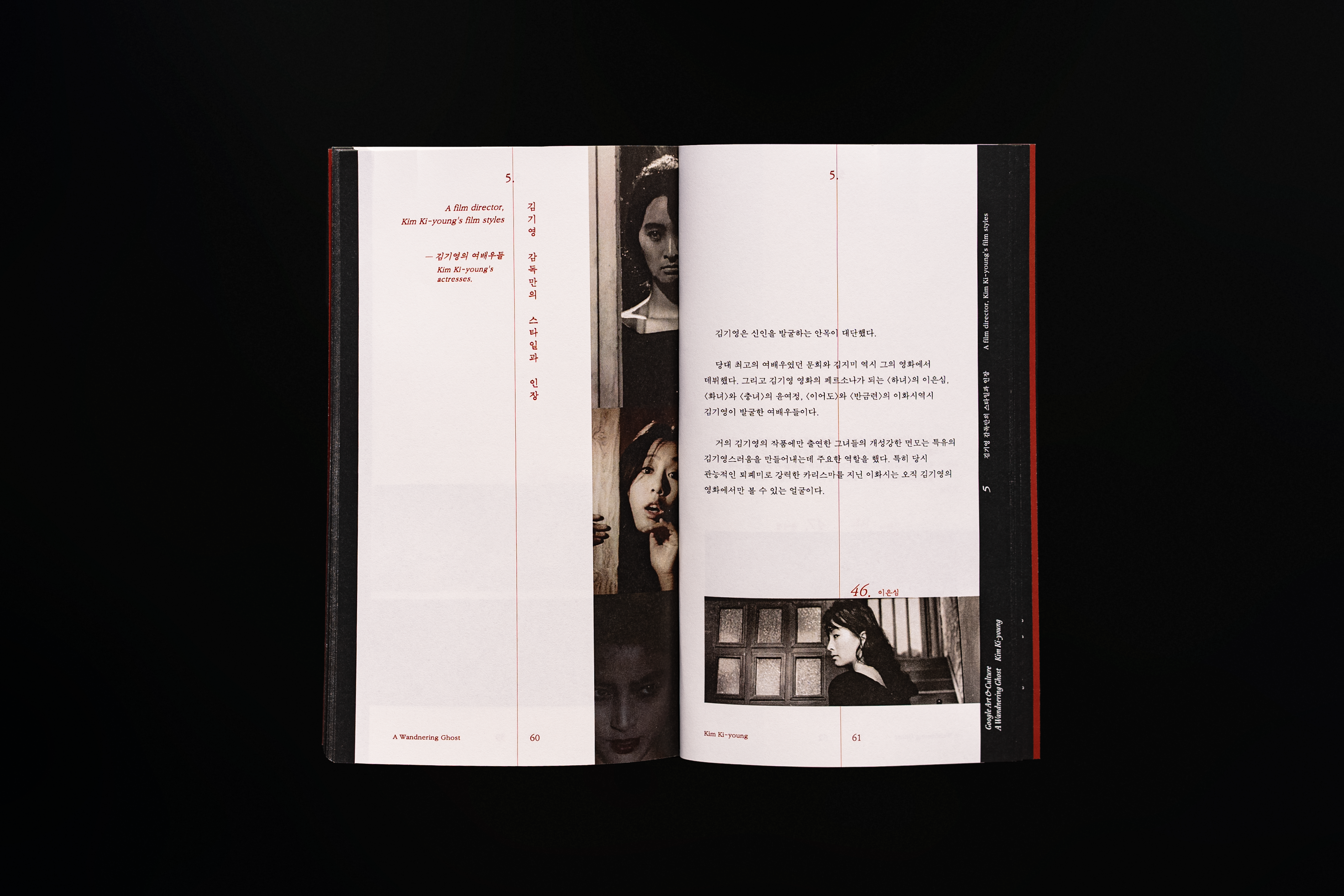 The book contains a piece of writing about film director Kim Ki-young in Google Art & Culture. I designed a layout showing a descending image based on the impressive scene (cover photo) of Kim Ki-young's representative work "The Handmaid". I also designed the grotesque feeling of his film work to be felt in the book.