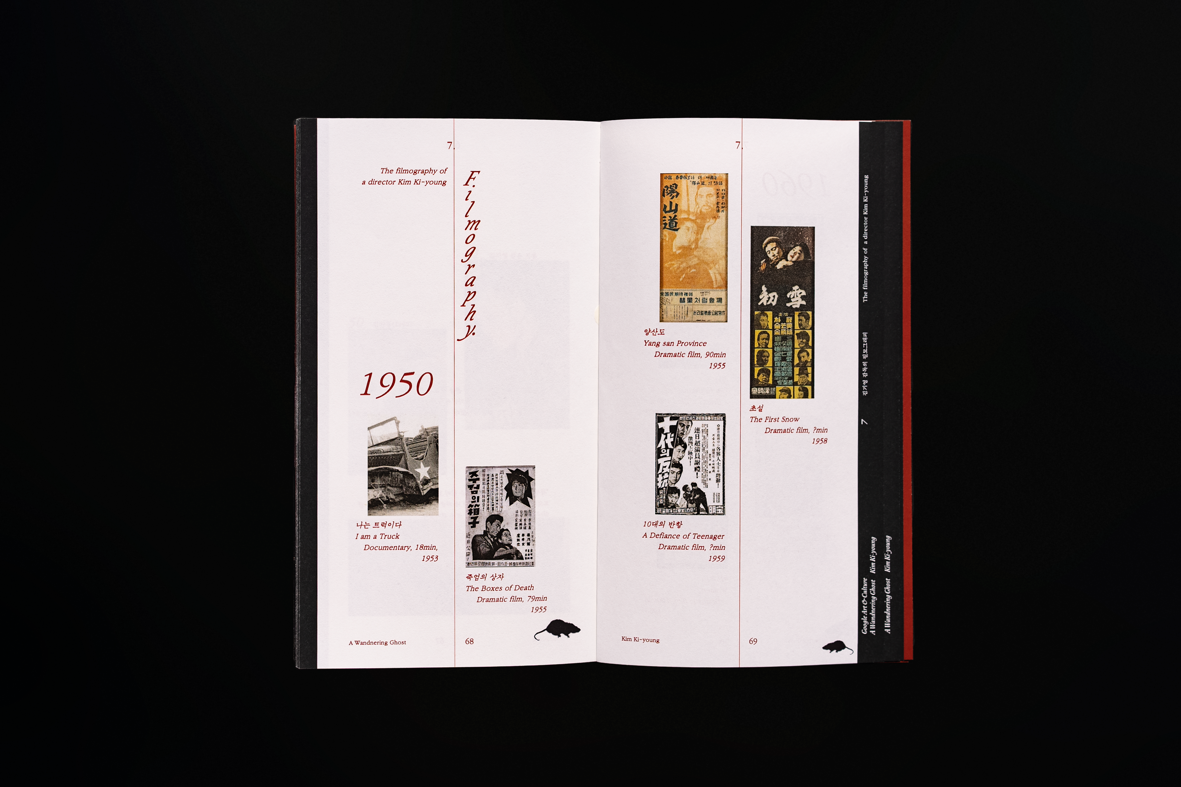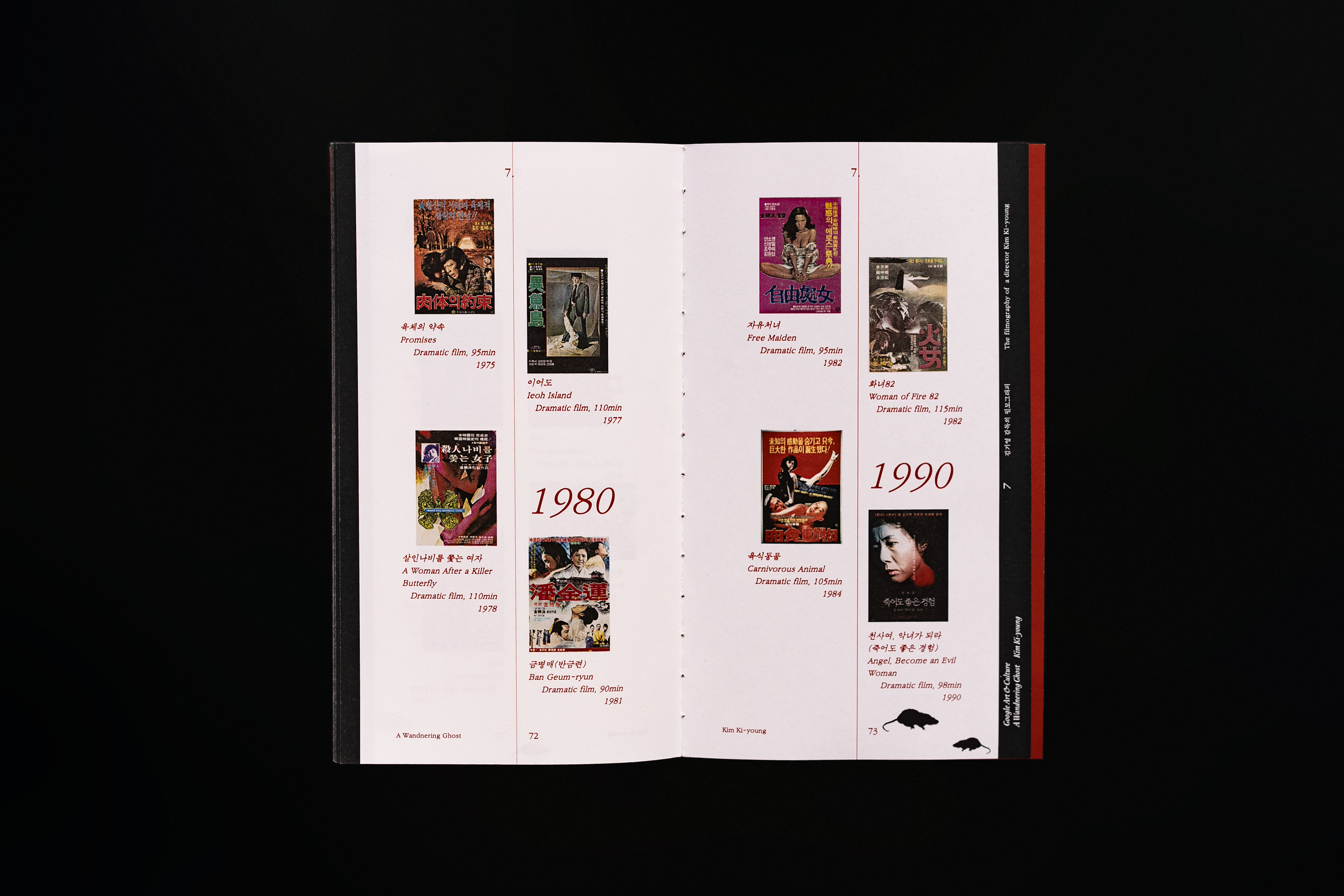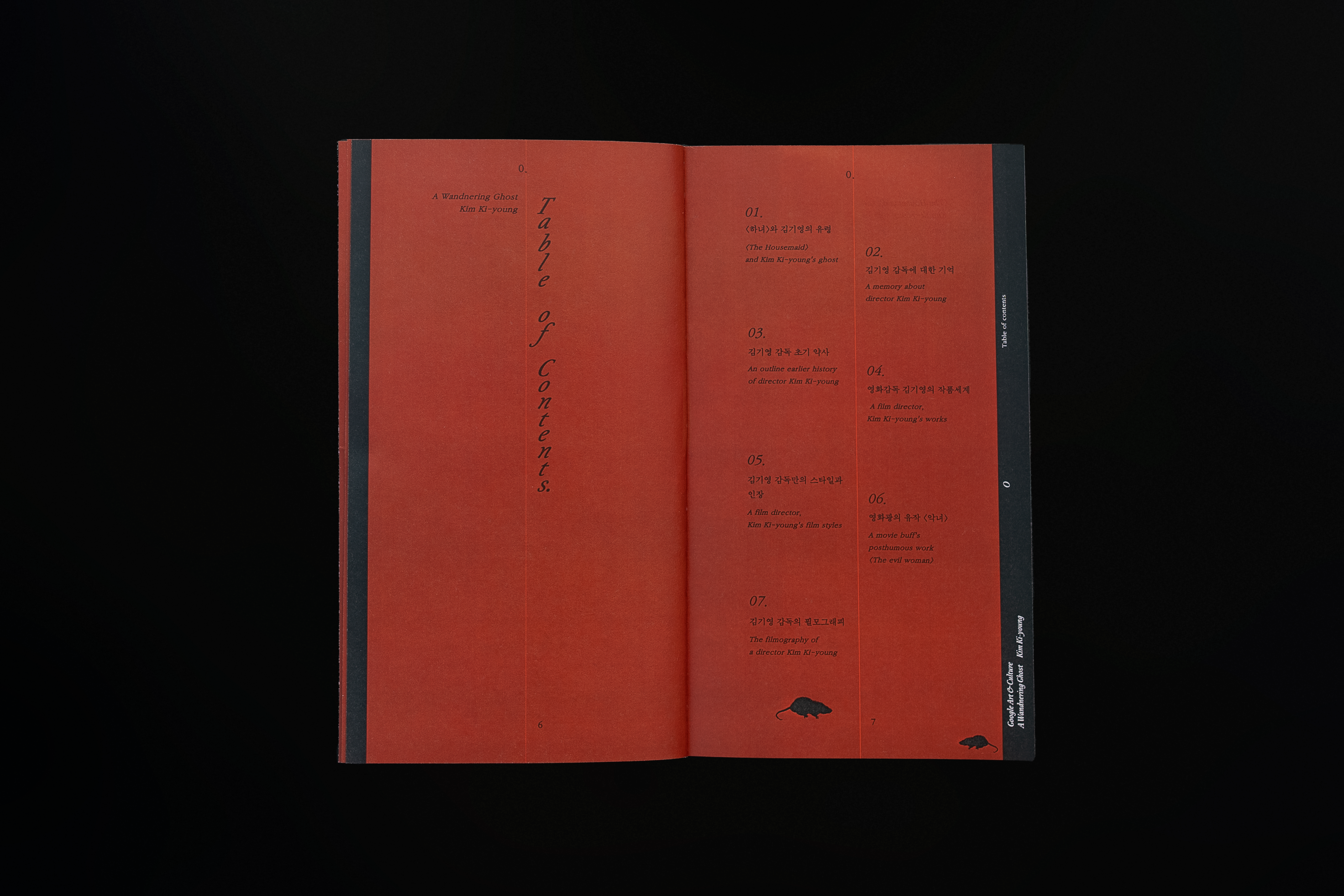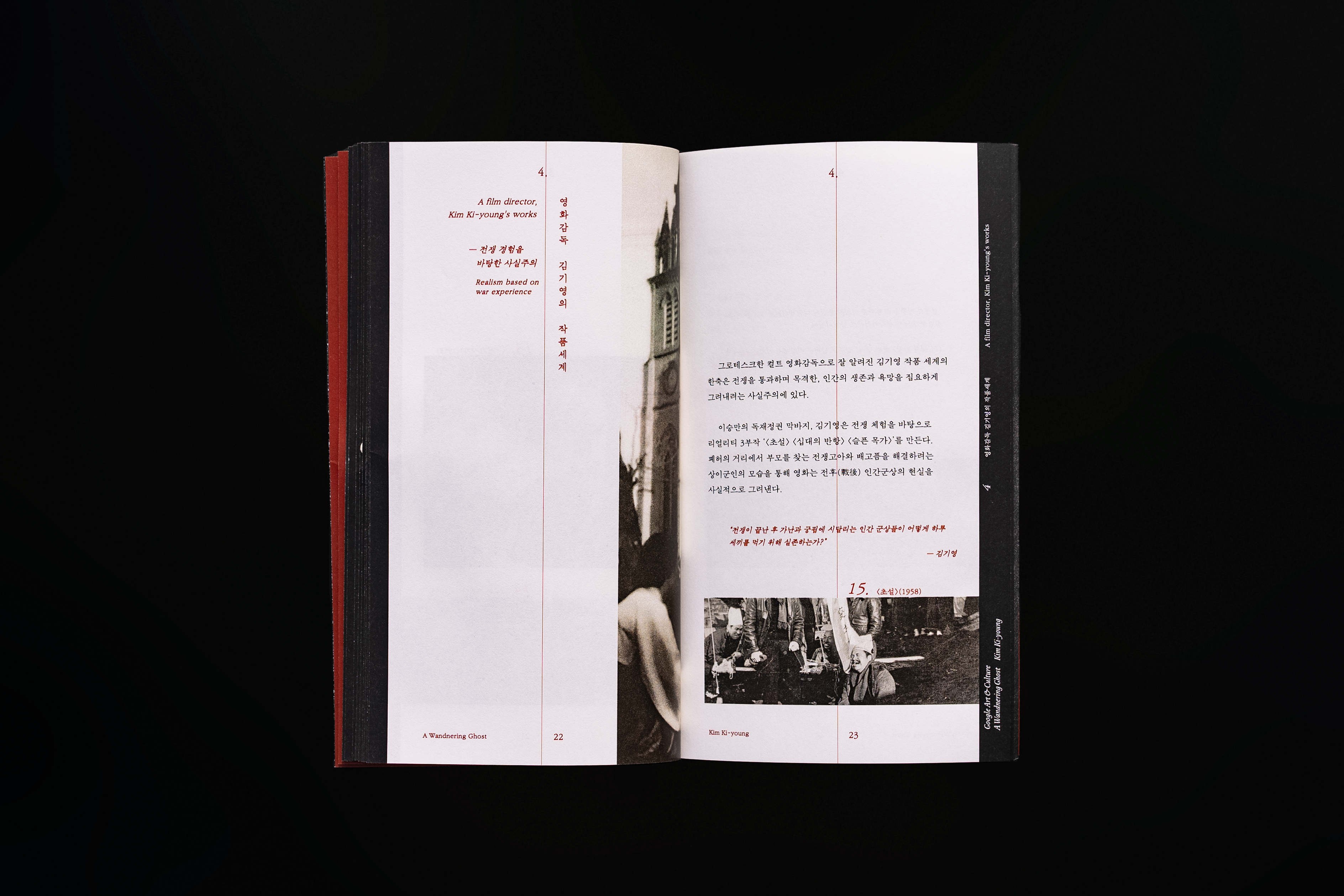 The book contains a piece of writing about film director Kim Ki-young in Google Art & Culture. I designed a layout showing a descending image based on the impressive scene (cover photo) of Kim Ki-young's representative work "The Handmaid". I also designed the grotesque feeling of his film work to be felt in the book.