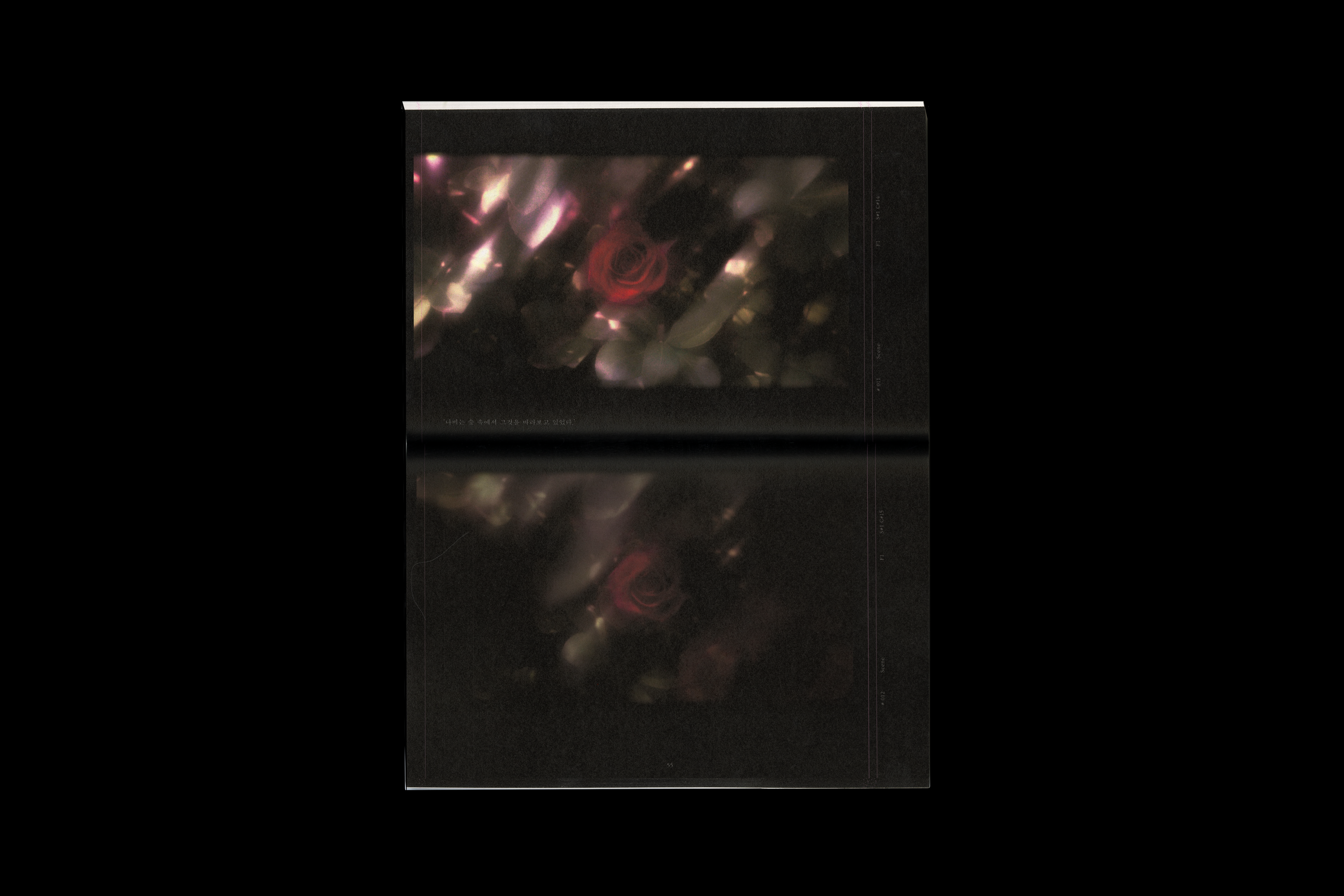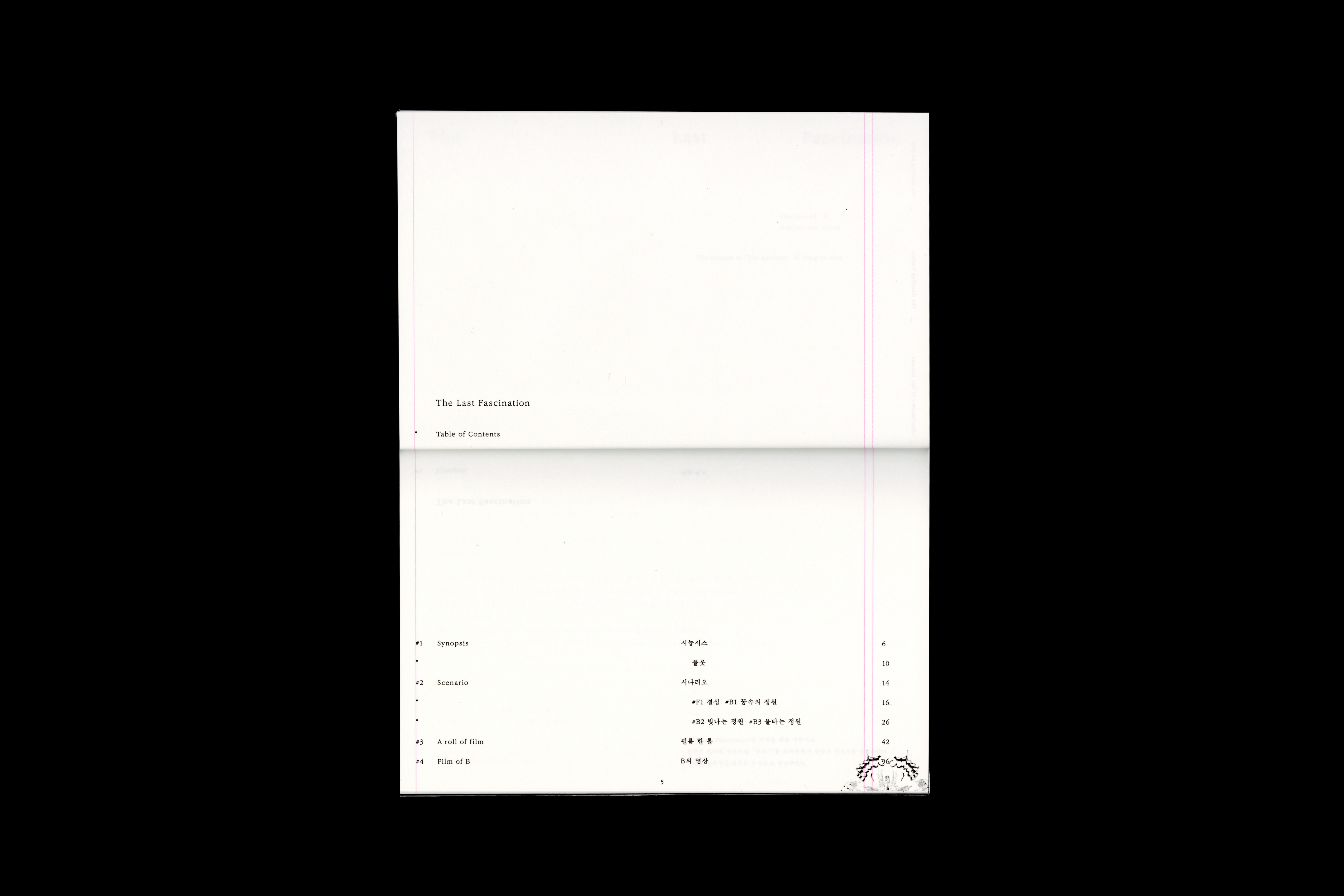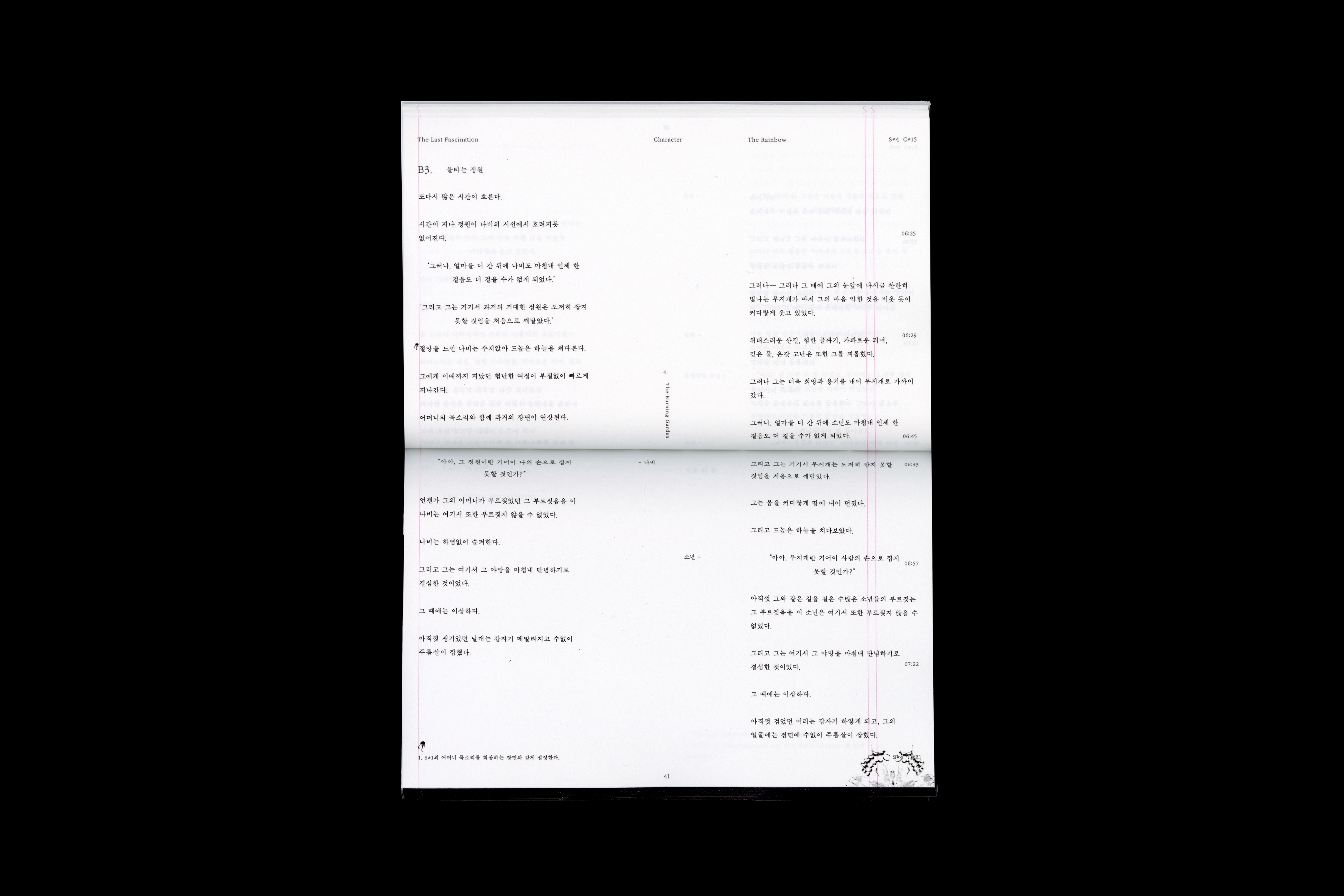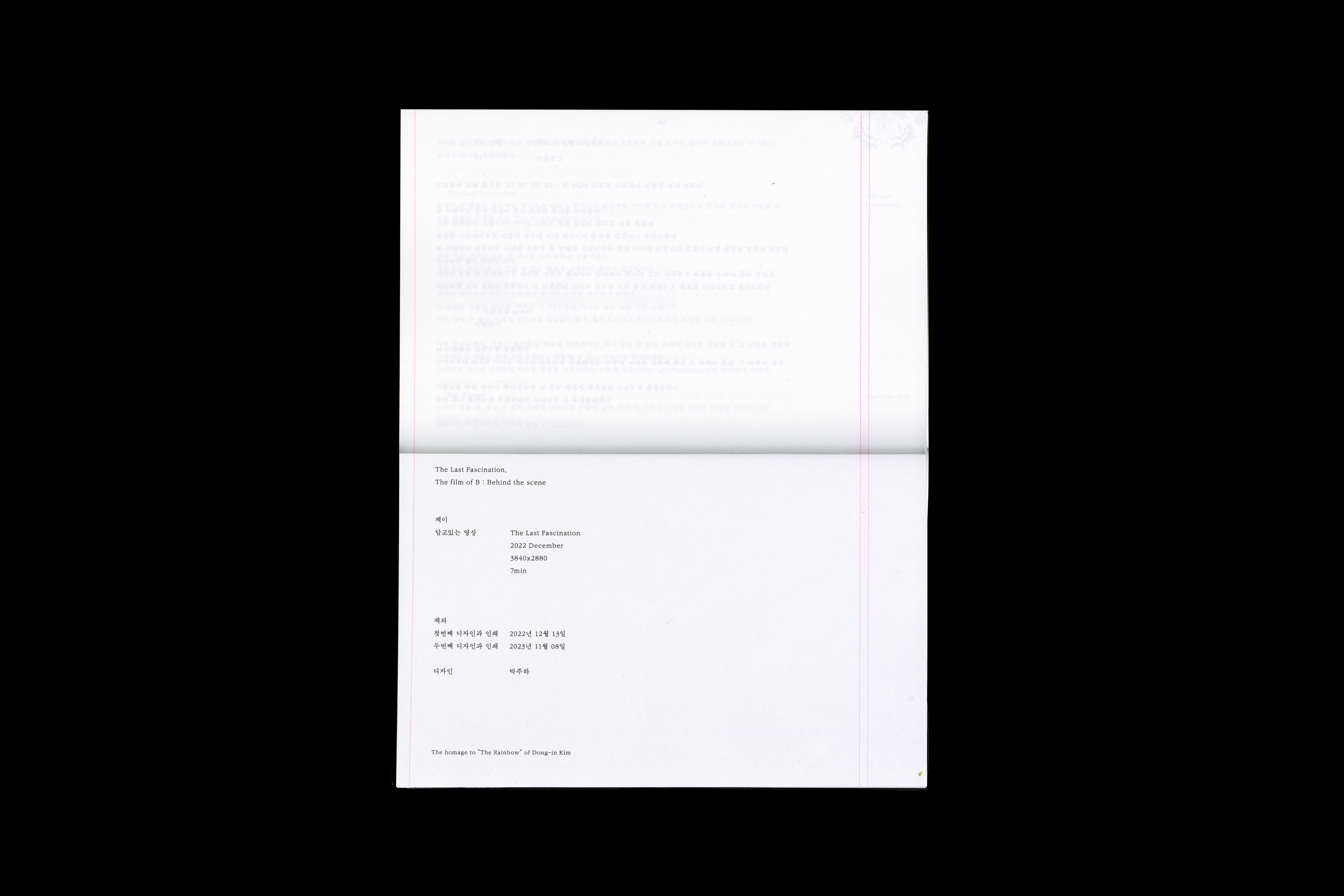 Based on the book size of the script book, the layout was designed to place texts at both ends so that "The Rainbow" and 'The Last Fascination' could be compared.